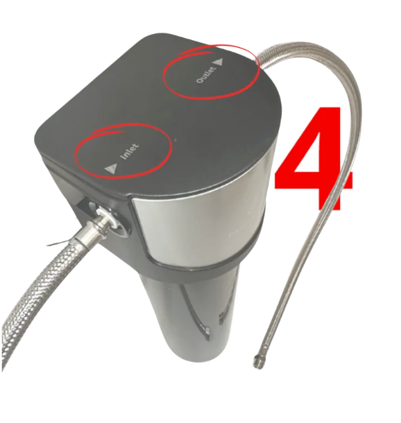 Connectez le raccord côté inlet à votre arrivée d’eau. Puis, connectez le raccord côté outlet à votre évier. C’est comme mettre vos baskets à l'endroit